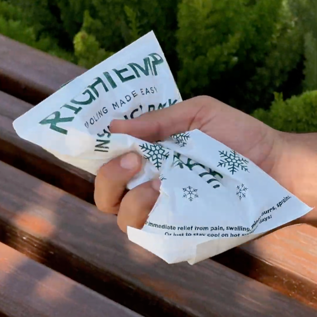 Our Instant Ice Pack is designed for immediate cooling relief anytime, anywhere. With just a quick squeeze and shake, it activates instantly, no freezing, no electricity, no waiting. Disposable and one-time use.